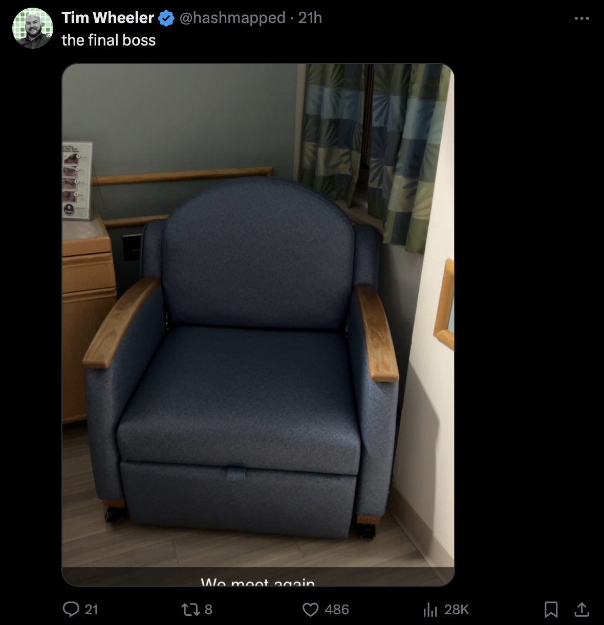 So here’s to us men. While giving birth certainly is a miracle, and I totally get that, sleeping in one of those recliners is one as well. A miracle.
